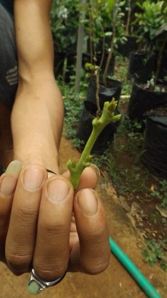 - Kemudian tempatkan di tempat yang tidak terkena cahaya matahari langsung, bisa ditempat teduk seperti dibawah pohon atau dibawah paranet atau bisa juga diteras rumah. Jika sambungannya berhasil maka akan muncul bibit baru yang sifat berbuahnya yaitu daging yang tebal dan ukuran buah yang cukup besar. Tetapi jika sambungan ini gagal maka anda bisa mengulangnya dari awal.