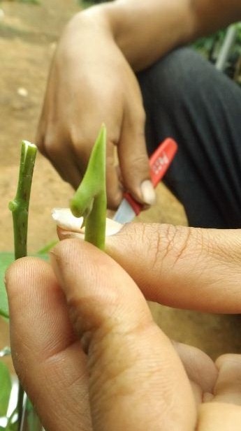 2. Batang bawah usahakan memiliki daun yang banyak, terutama bagaian bawah potongan. Semakin banyak dauan yang ada dibawah sambungan maka pertumbuhan batang bawah akan semakin cepat sehingga pertumbuhan bibitpun juga bagus.