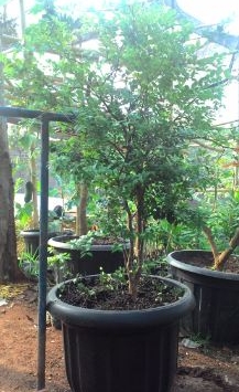 Empat bulan berselang ia menanam bibit hasil cangkokan setinggi 1,5 cm di polibag karung plastik berdiameter 50 cm. Ia menggunakan media campuran tanah dan kotoran kambing dengan perbandingan 1: 2. Dua tahun berselang pohon anggota famili Rosaceae itu berbuah perdana. Setiobudhi memberi 1 sendok makan pupuk NPK dengan interval 1 bulan. Pembuahan kedua pada Juli 2015 yang menghasilkan 3 buah.